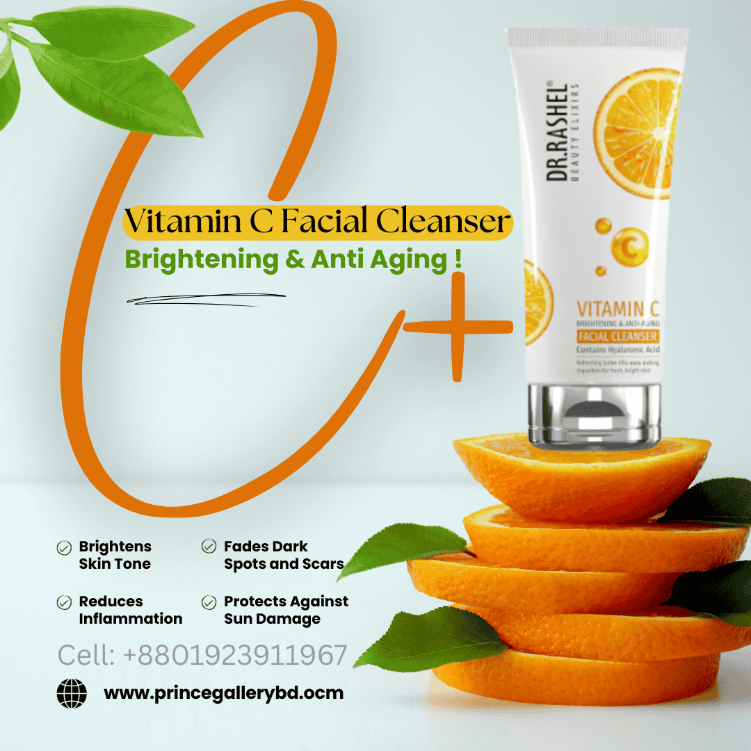 Dr. Rashel Vitamin C Facial Cleanser 80ml use করেছি — ত্বক অনেক fresh ও glowing লাগছে! Deep cleanse দেয় এবং gentle on skin। PrinceGalleryBD থেকে পেয়ে delivery super fast ও 100% authentic। Highly recommend!